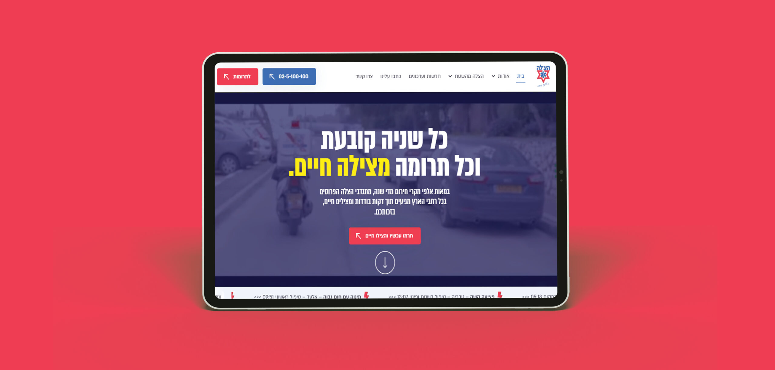 הצלה הוא ארגון ארצי להצלת חיים, הפועל במהירות, מקצועיות ומסירות מלאה להצלת נפשות. הארגון מבוסס על מתנדבים מיומנים ופריסה רחבה, ומהווה כתובת מיידית למענה בשטח ברגעים הקריטיים ביותר.